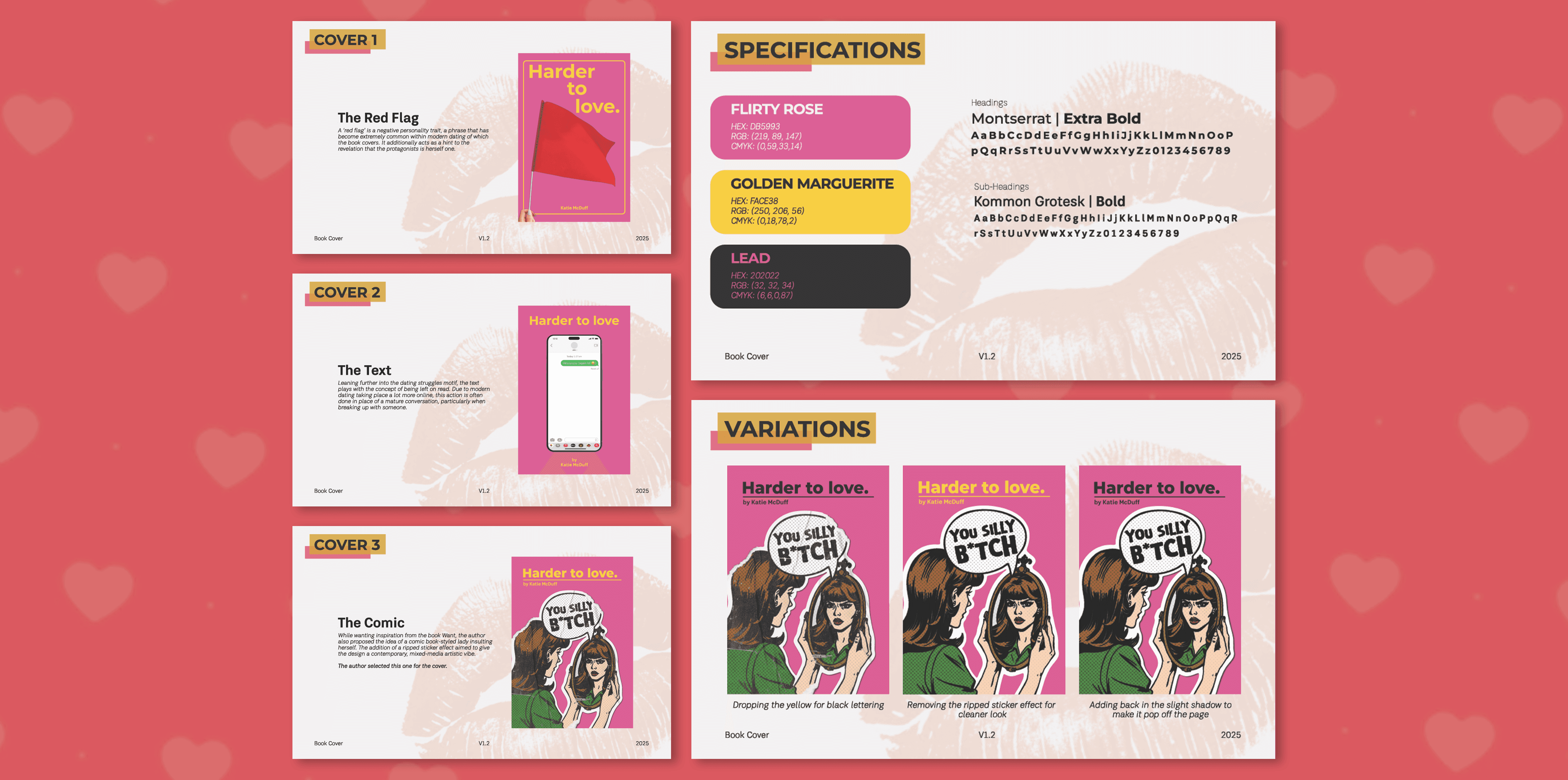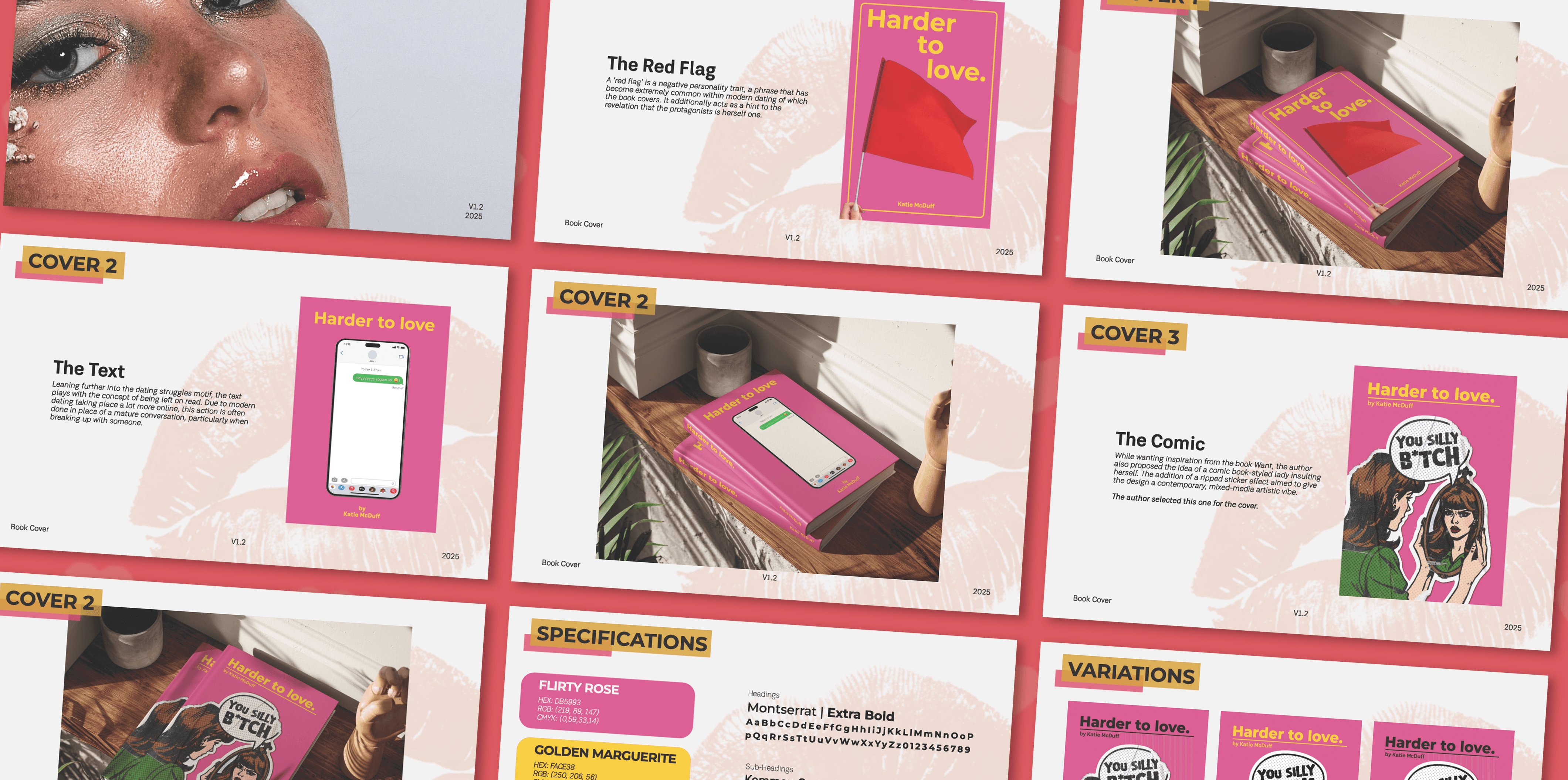 The covers draw on modern dating culture and its visual language - using red-flag symbolism, unread message notifications, and retro comic styling to capture the mix of humour, anxiety, and self-reflection at the heart of the story.